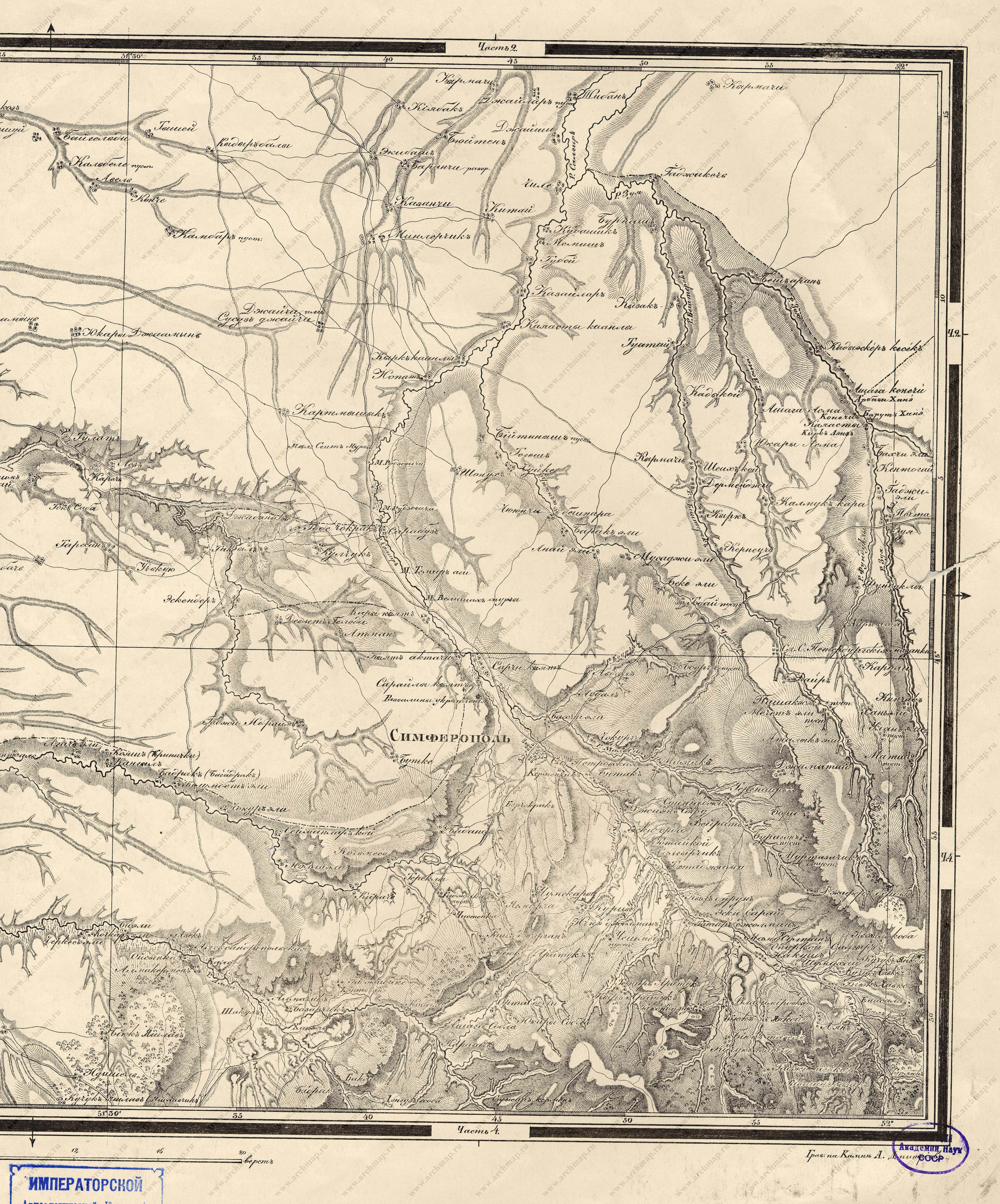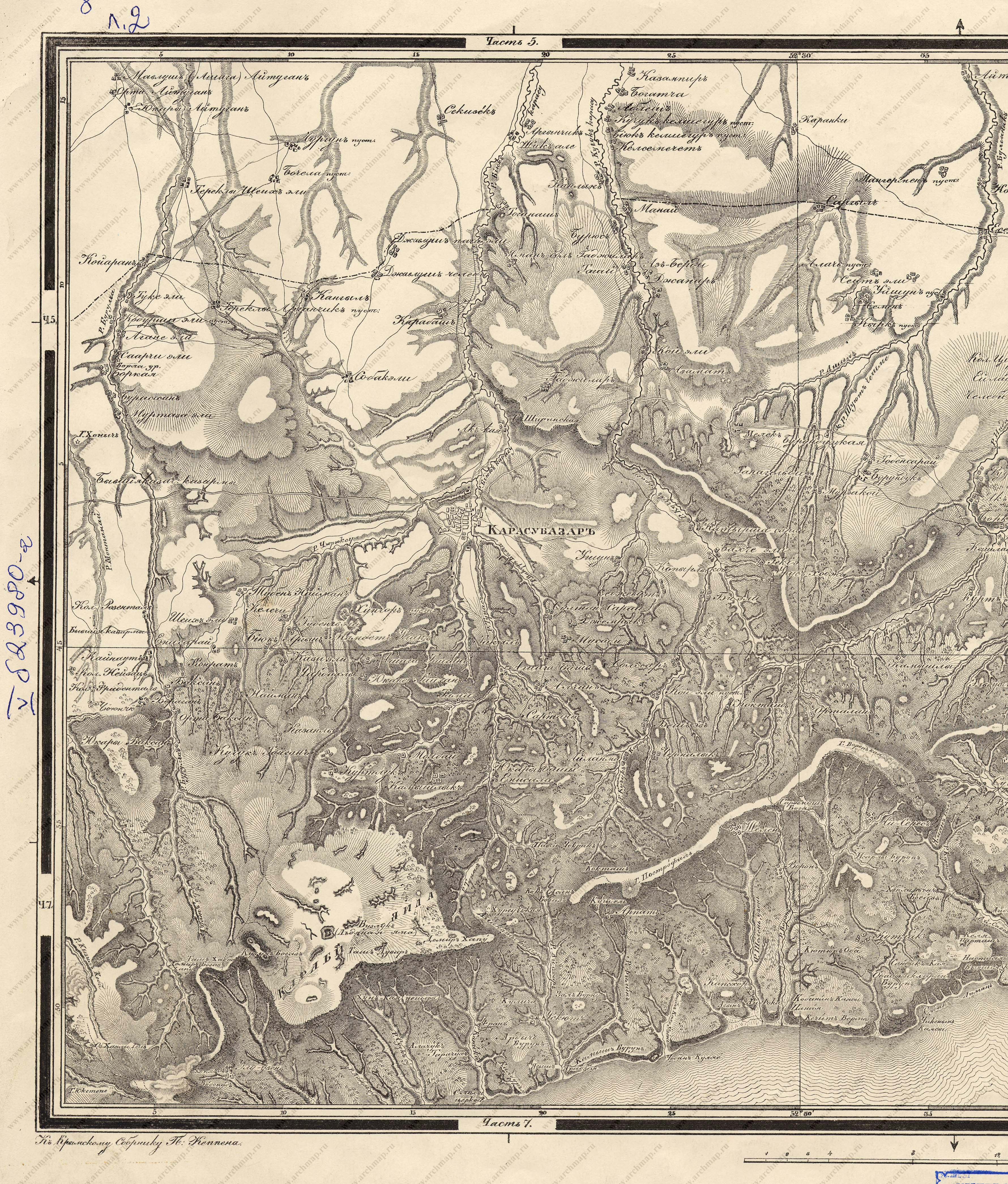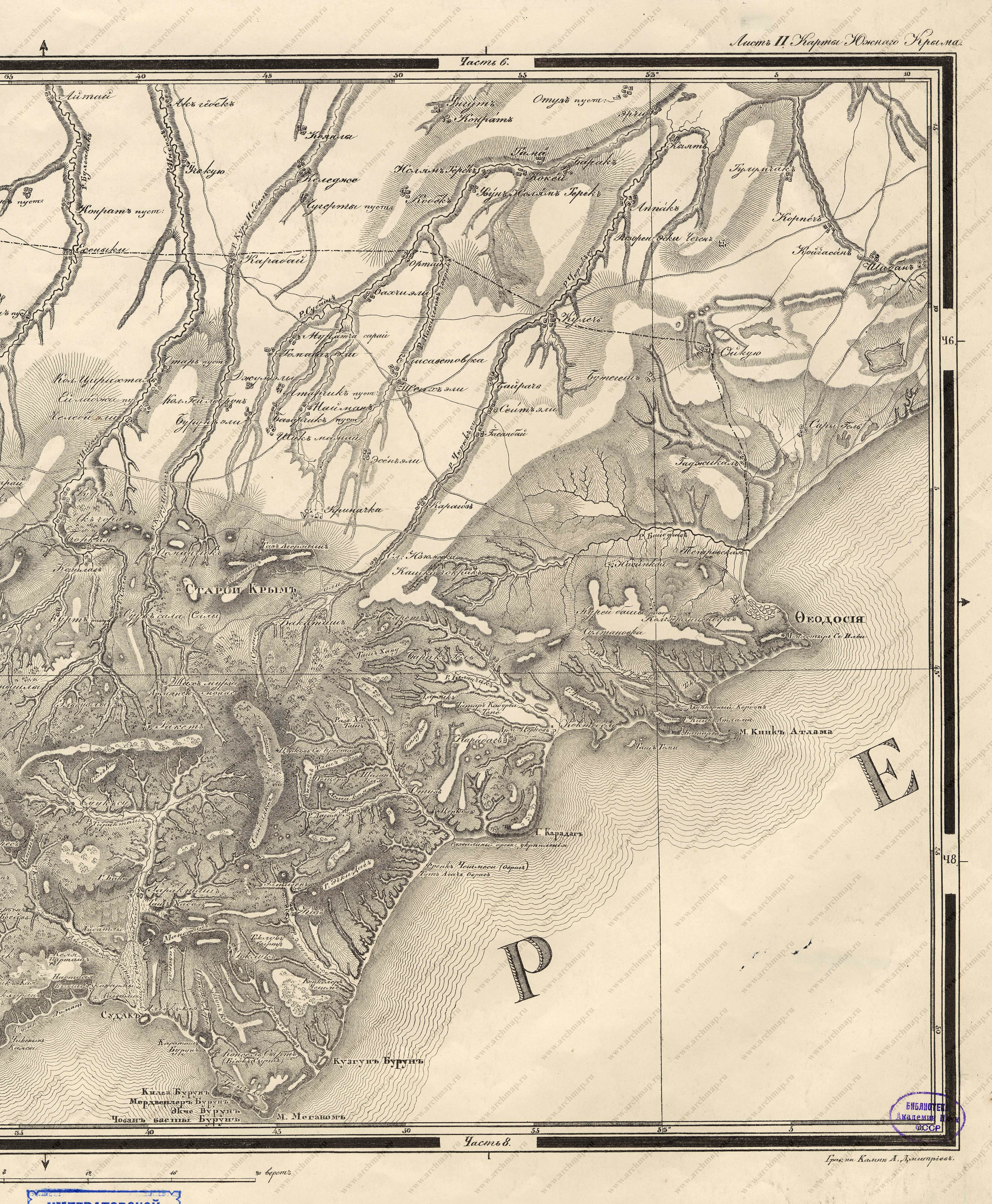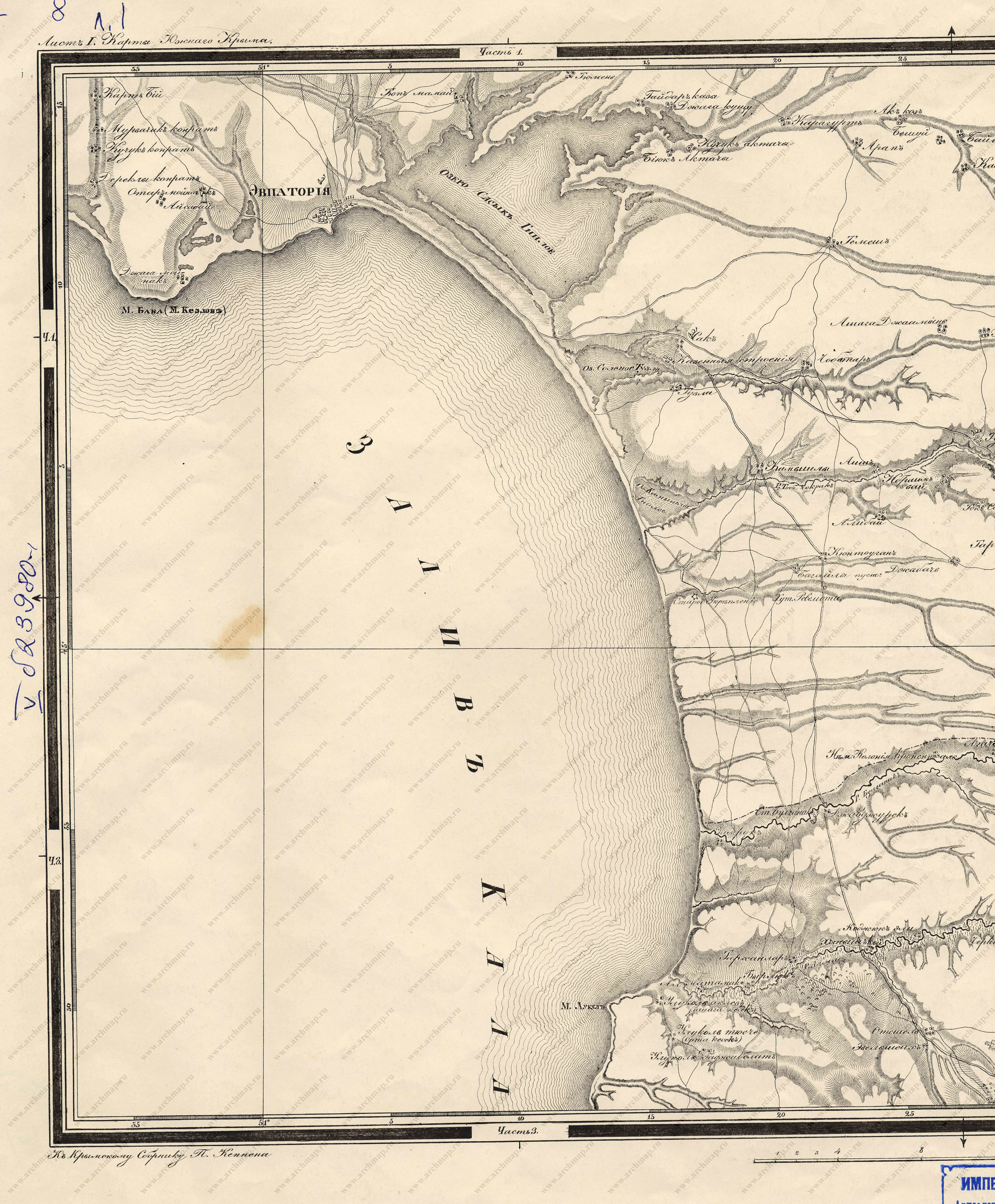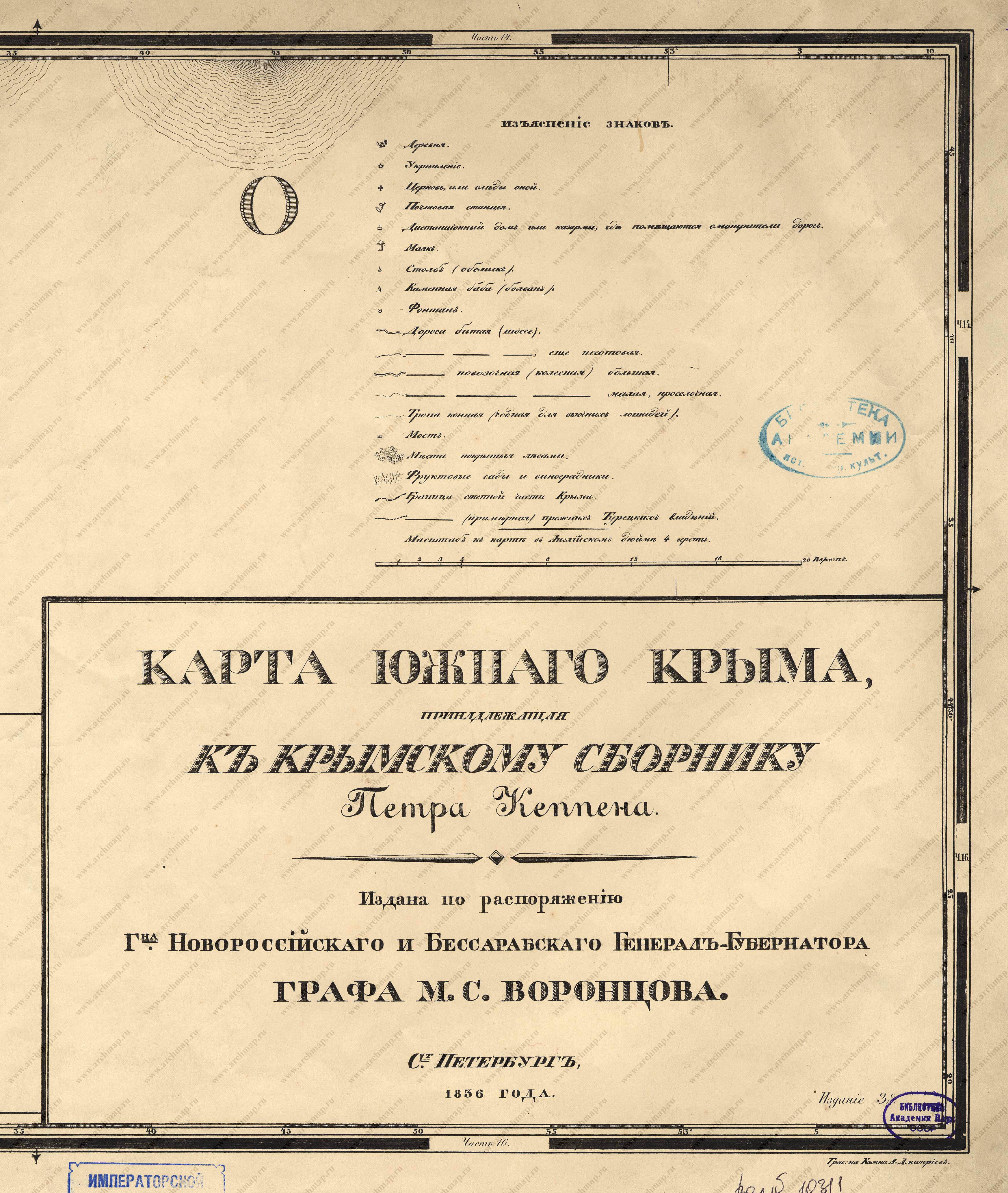 Karta iuzhnago Kryma, prinadlezhashchaia k Krymskomu Sborniku Petra Keppena (S. Peterburg: Graf M. S. Vorontsov, 1836)
